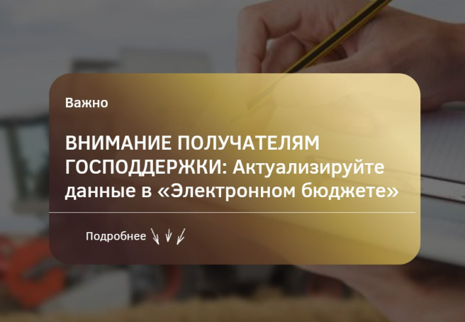 В преддверии начала отборов на получение субсидий просим получателей господдержки проверить актуальность своих данных в системе «Электронный бюджет».